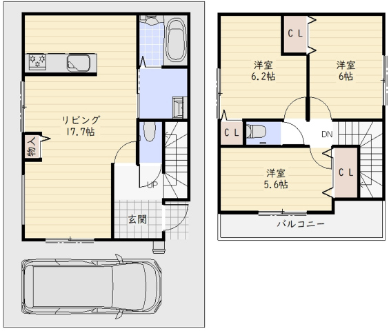 | 間取詳細 | (1F)LDK17.7、(2F)洋6.2、洋6、洋5.6 | 地目 | 宅地 | |||||||||||||||